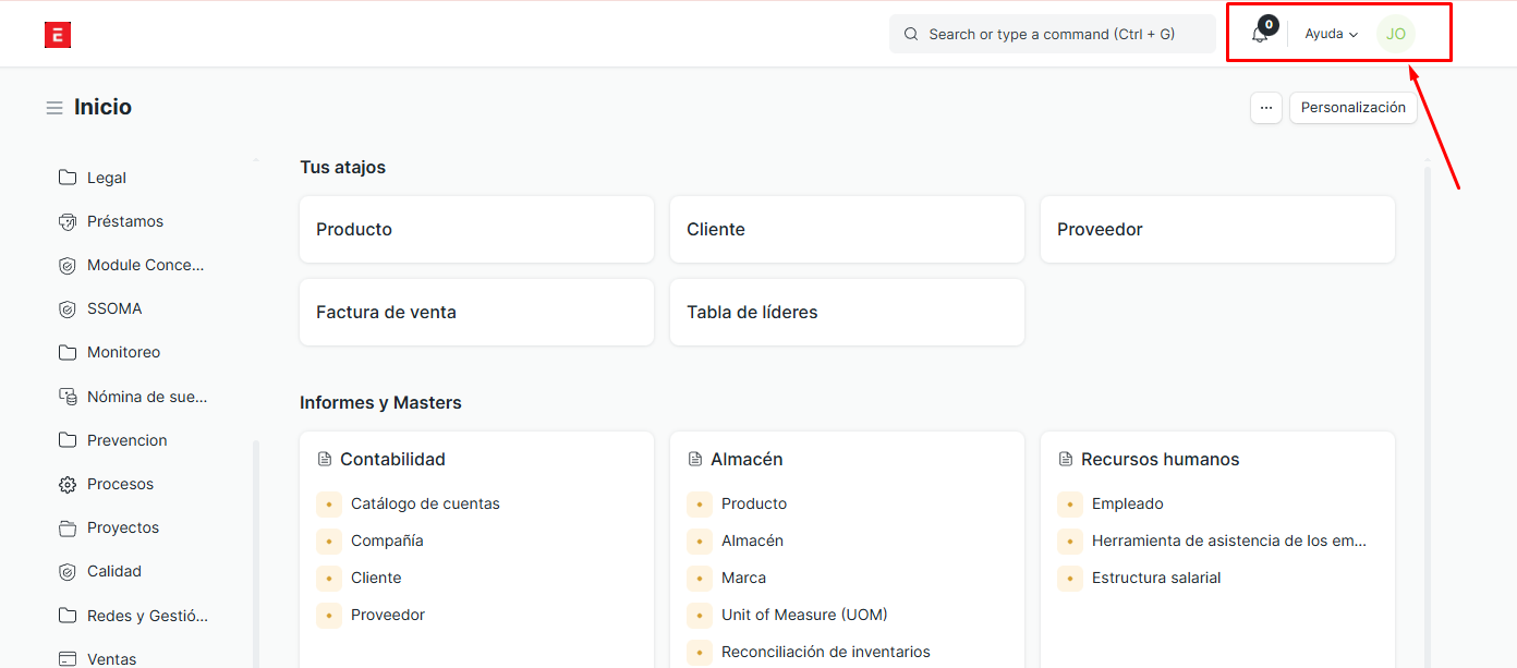 Ruta: ERP>Perfil>Tienda