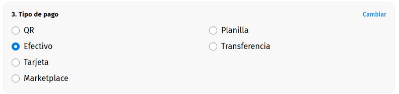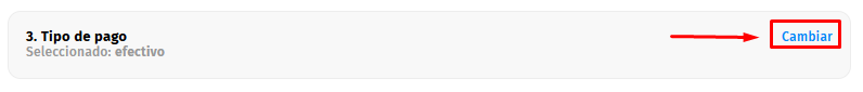 - Primero el que esta establecido por defecto, el pago en "Efectivo".