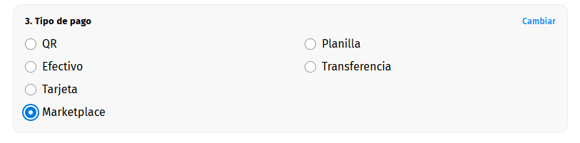 Ahora veremos los diferentes tipos de pago que se pueden hacer: