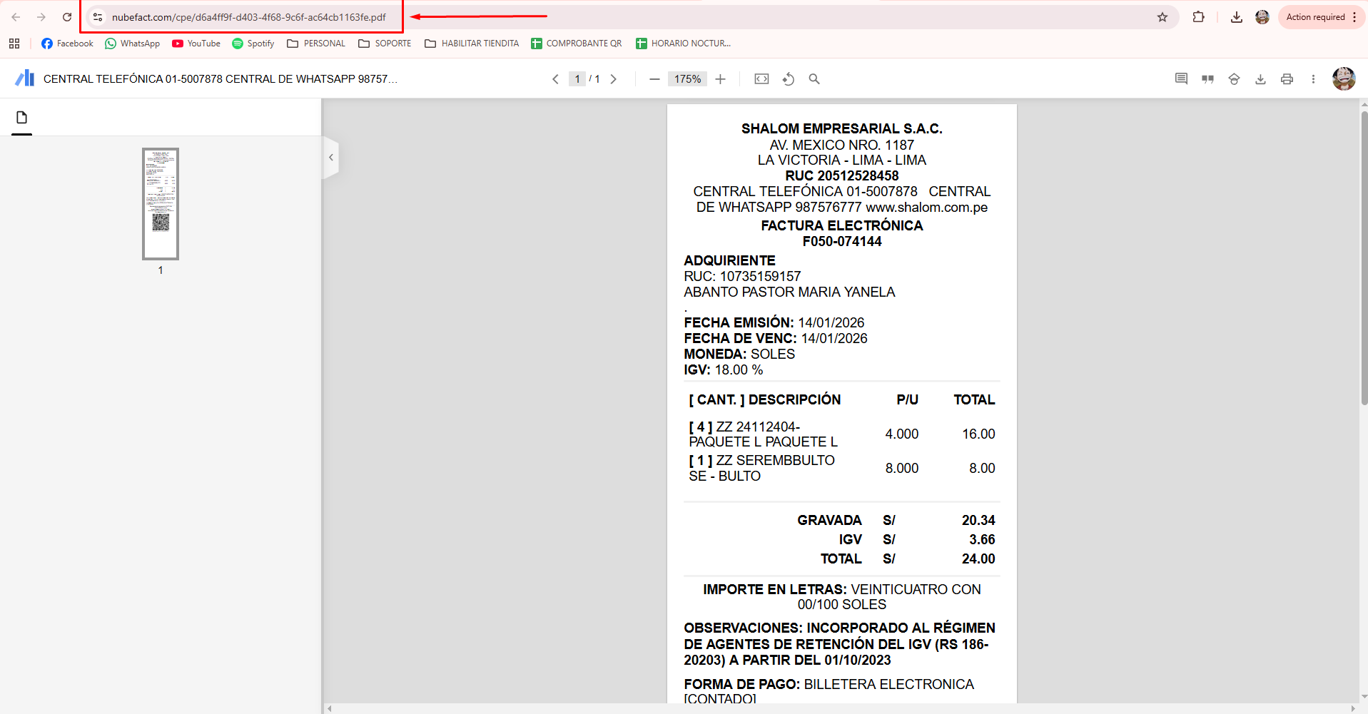 En el caso de factura: