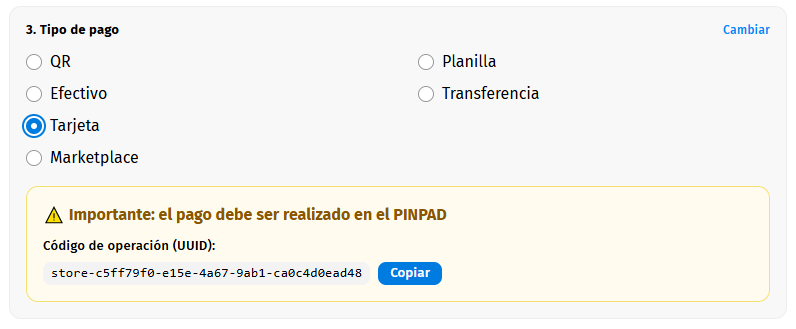 - Tipo "Tarjeta", el link tiene que ser vinculado al apartado del pinpad.