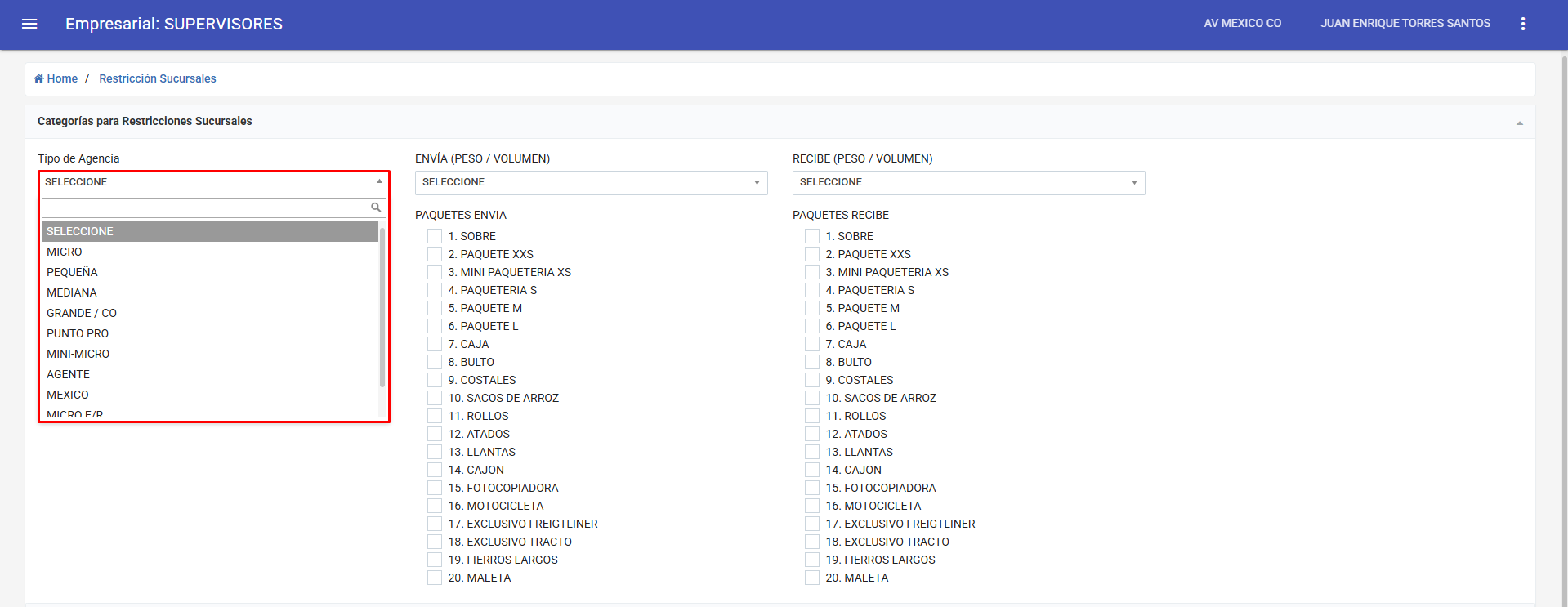 El módulo de restricciones opera bajo reglas de visualización obligatoria para el "ROL SUPERVISORES"