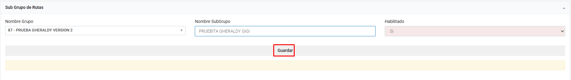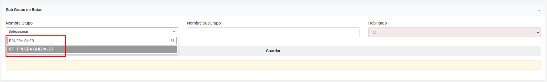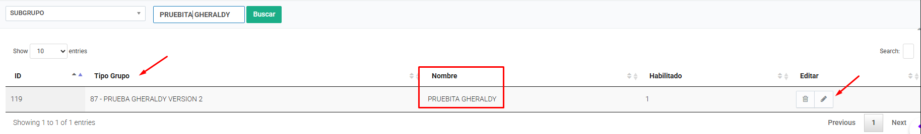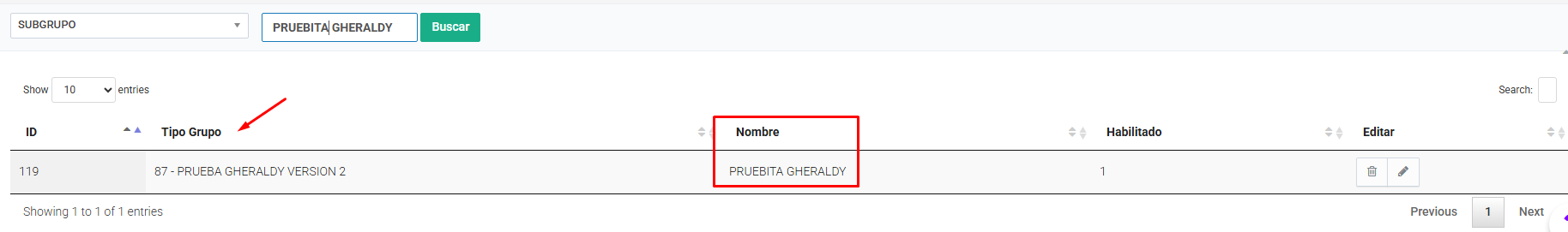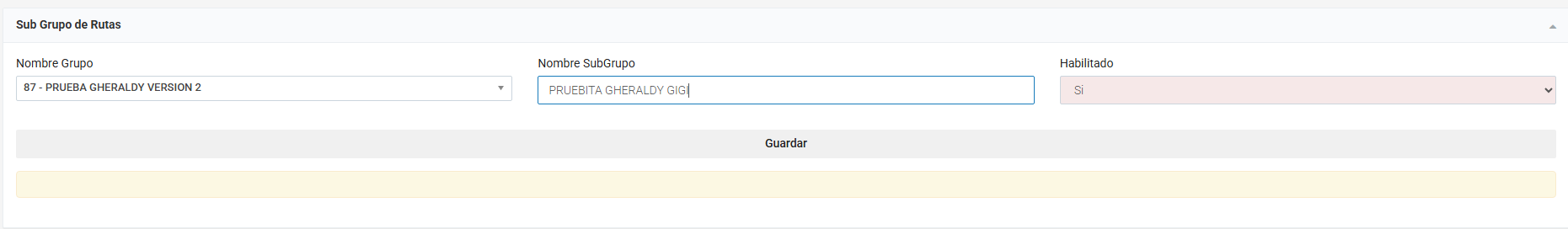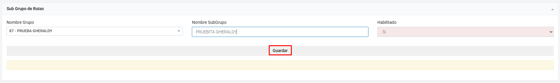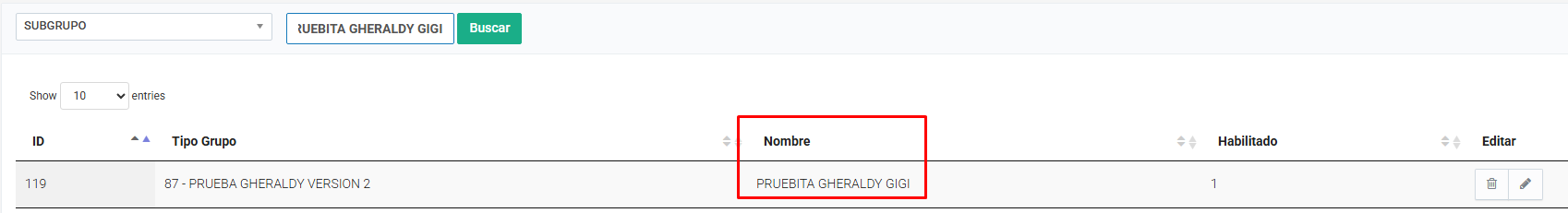 Ingresar el nombre del subgrupo