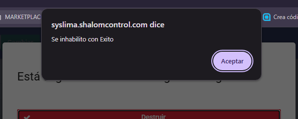 Hacer clic en "Destruir"