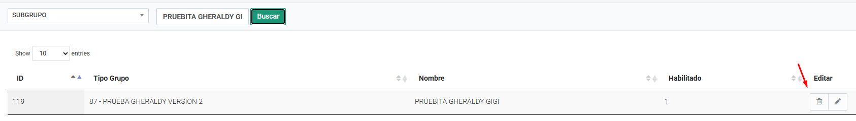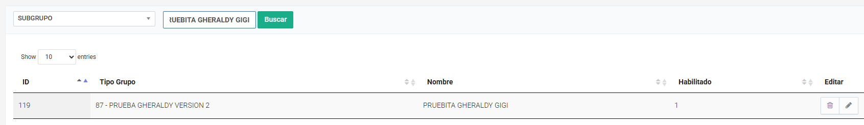 - El tipo de grupo que fue eliminada sale visualmente pero al editar no