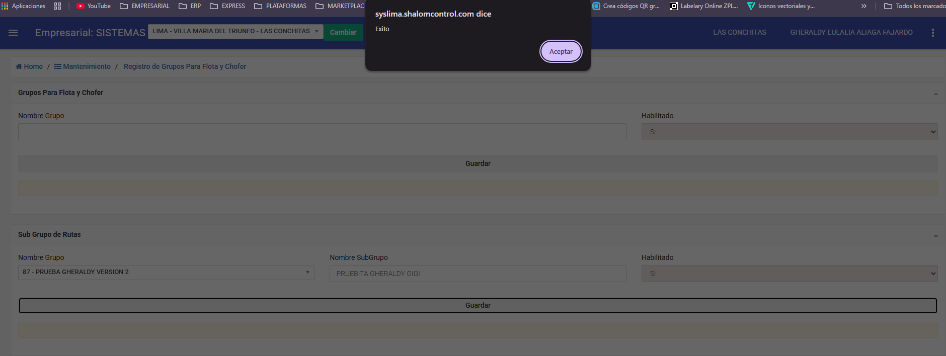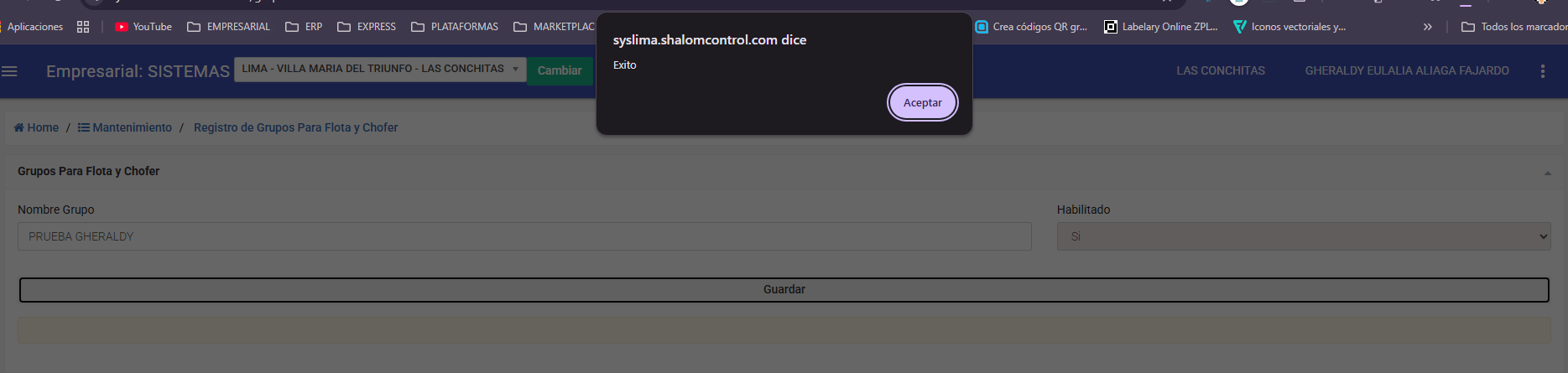 Ingresar al apartado "Grupos para flota y chofer"