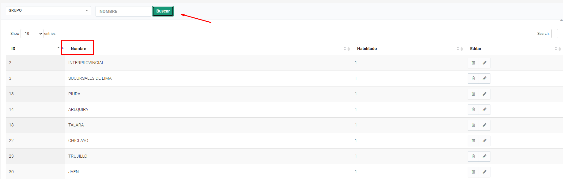 - Por defecto sale "Grupo"