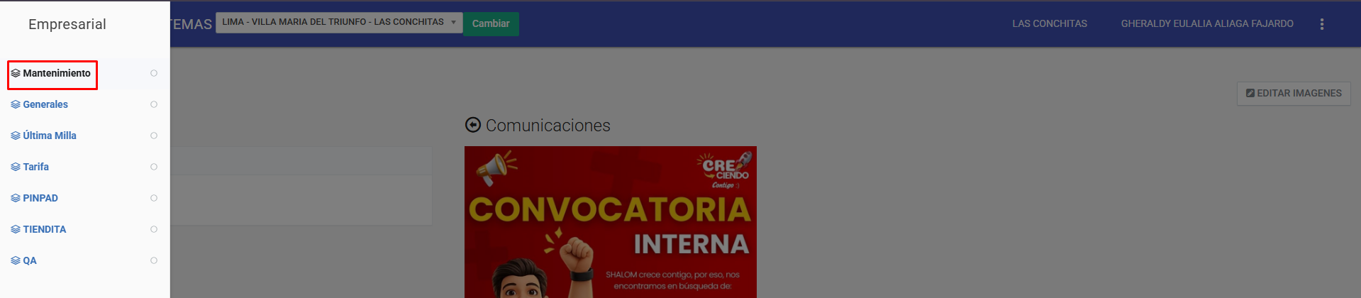 Ingresar al modulo "Mantenimiento"