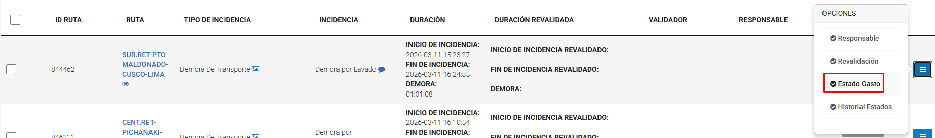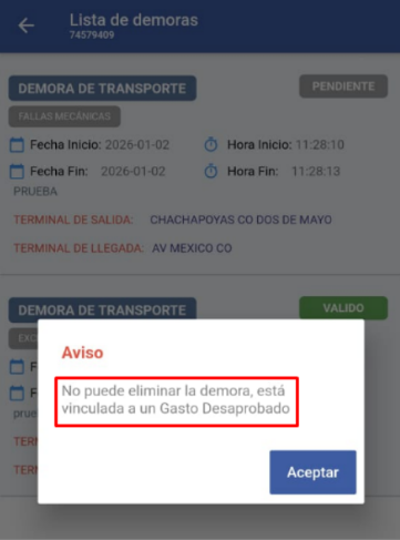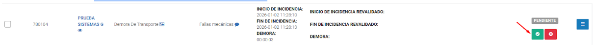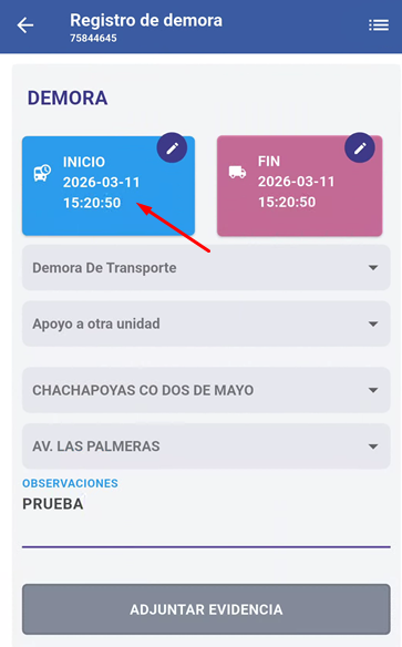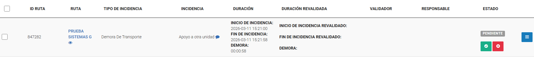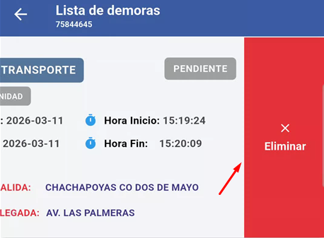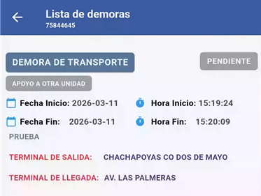 Verificar la demora registrada (Estado: PENDIENTE)