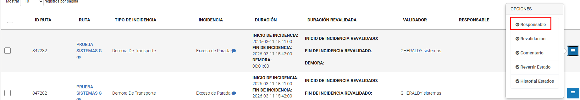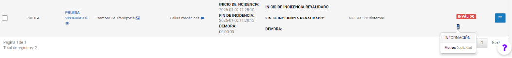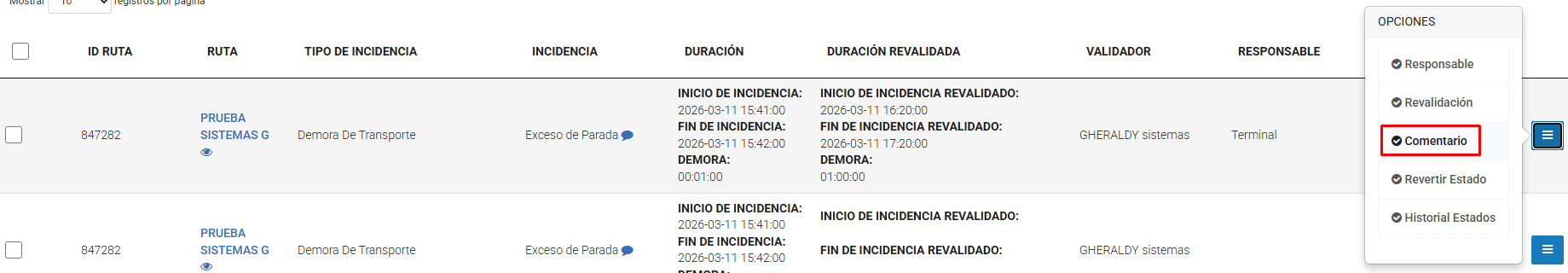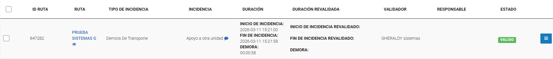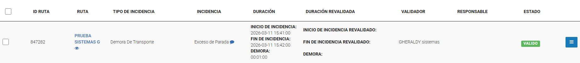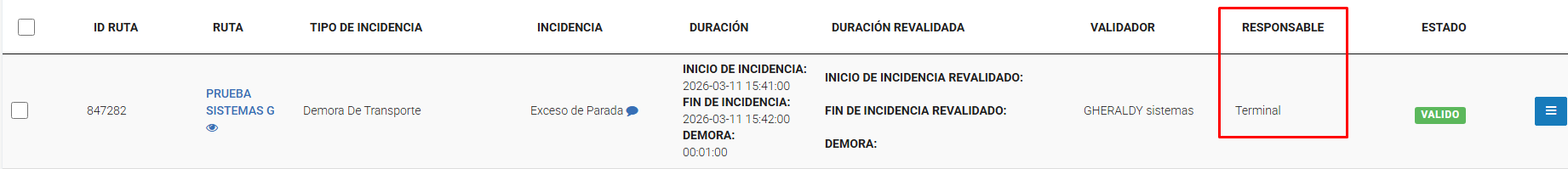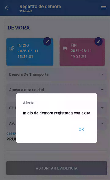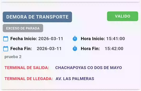 Verificar la demora registrada (Estado: VALIDO)
