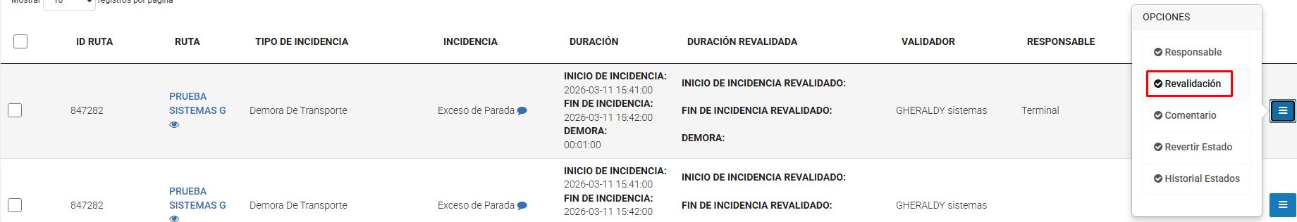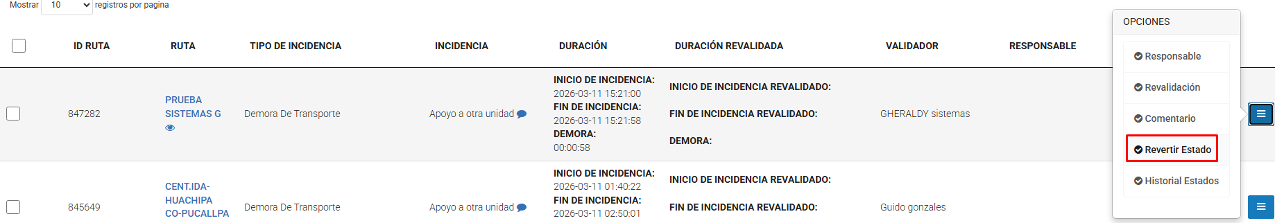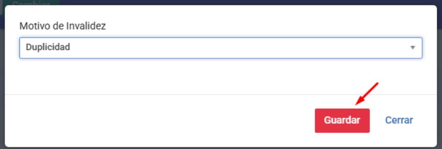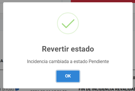 Hacer clic en "Revertir estado" → esta funcionalidad se realiza más cuando quieres volver de valido o invalido
