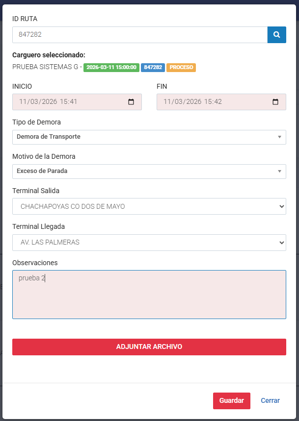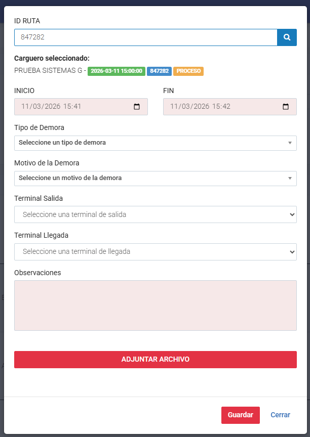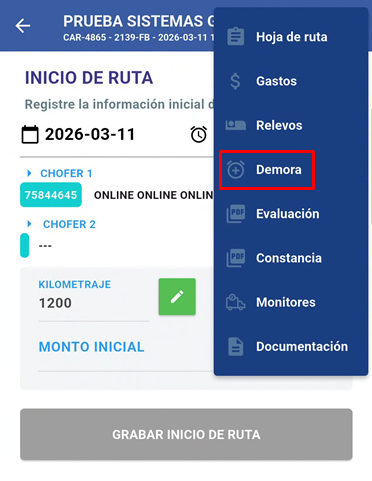 - Ruta: Ruta madre que se este usando en la programación que fue registrado la demora