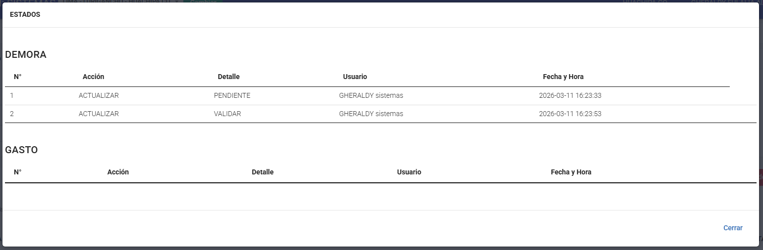 Ver los cambios realizados respecto al estado en la demora y gasto si tiene vinculado