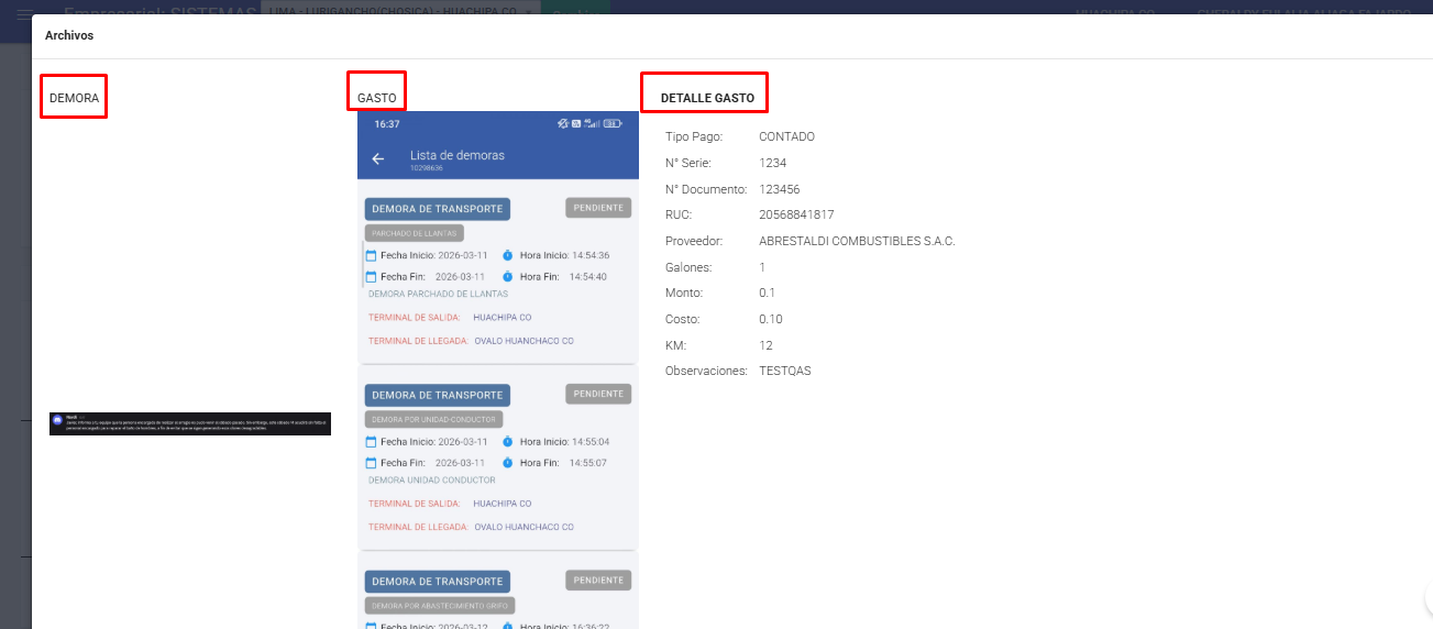 - Muestra el adjunto y detalle del gasto vinculado si tuviese