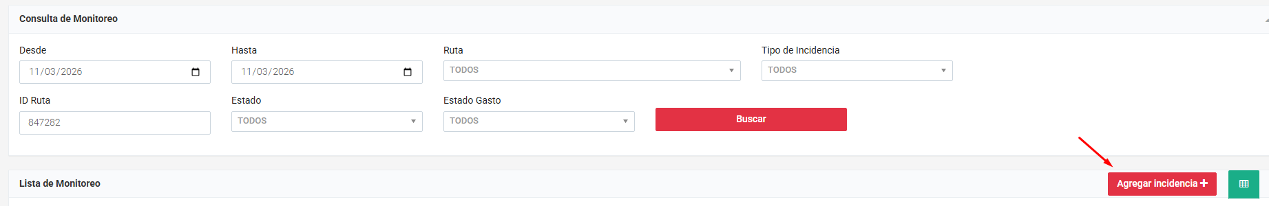 Ir a "Agregar Incidencia"