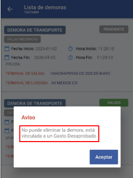 para las demoras vinculadas a un gasto: se valida en automático cuando se aprueba el gasto vinculado