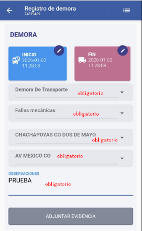 las demoras registradas por empresarial no tienen opción a eliminar y están válidas por defecto