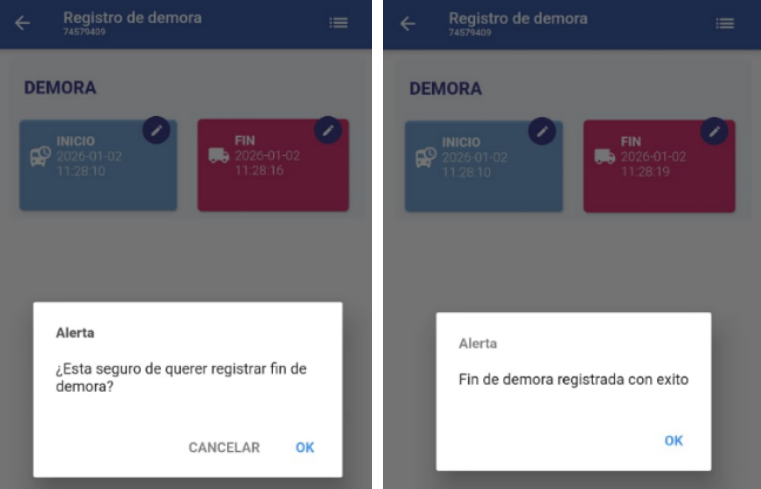 Verificar la demora registrada (Estado: VALIDO)