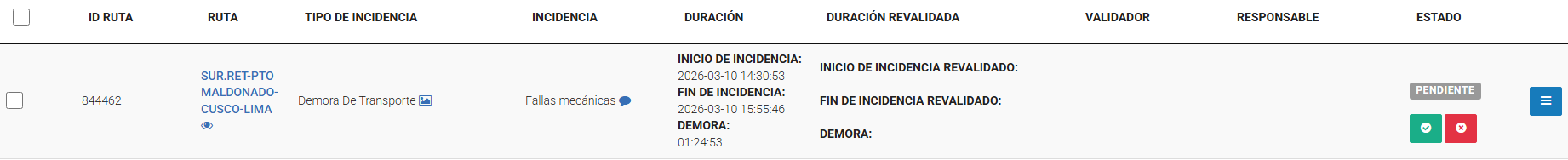 Verificar la demora registrada (Estado: PENDIENTE)